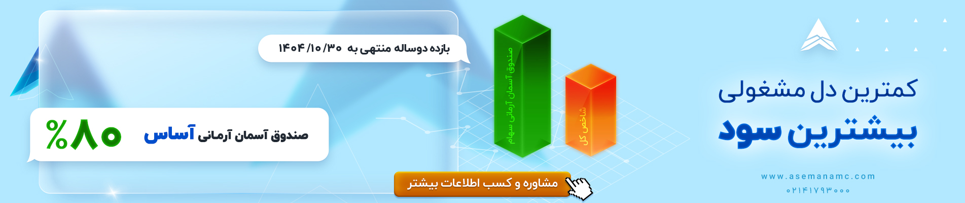 | ۸ | ۱۴۰۴/۱۱/۰۶ | 65,819 | 65,271 | 65,271 | ۰ | ۰ | ۷۷۲,۴۷۹,۴۸۳ | ۱,۳۹۲,۰۰۰ | ۵۶۱,۱۱۲,۵۸۶ | ۲۰۳,۷۶۶,۸۹۷ | ۱۳,۲۹۹,۹۸۵,۸۱۸,۴۹۷ |